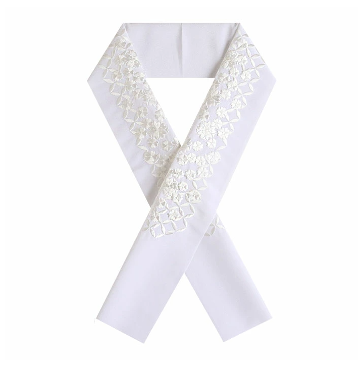 白の無地の半衿が最も一般的で、白地に金銀白色の刺繍が入ったものを選ぶこだわり派の方もいらっしゃいます。