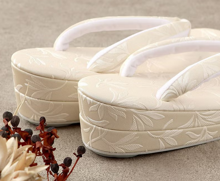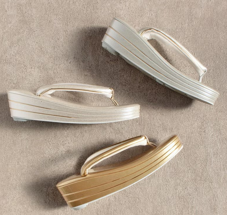 草履は様々なデザインのものがありますが、礼装用の草履はかかとが高い方がフォーマルとされています。