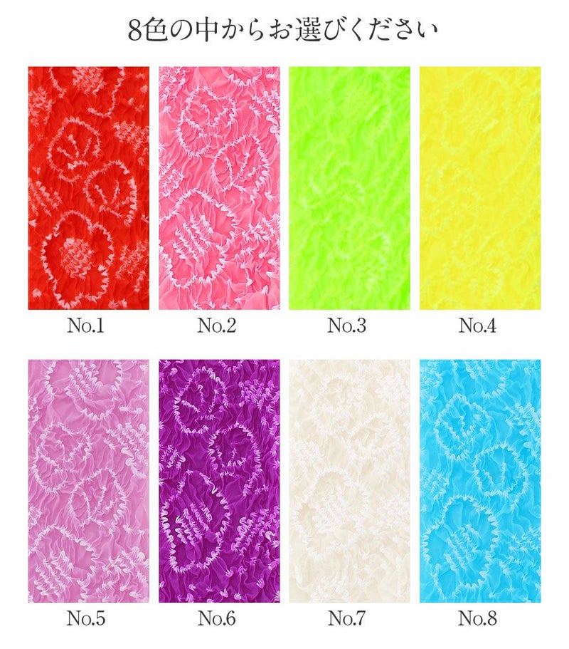 全8色 赤・蛍光ピンク・黄色・きみどり・ローズピンク・紫・アイボリー・水色 (蛍光ピンク、黄色、きみどり、水色は蛍光感のあるお色味になります。)