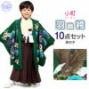 4. 《七五三》 羽織袴10点セット 男の子用 <小町kids> ポリエステル100% <羽織:緑×鷹、松葉/袴:茶×雲刺繍/着物:ベージュ> 5歳