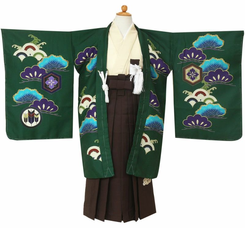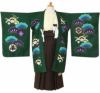 5. 《七五三》 羽織袴10点セット 男の子用 <小町kids> ポリエステル100% <羽織:緑×鷹、松葉/袴:茶×雲刺繍/着物:ベージュ> 5歳
