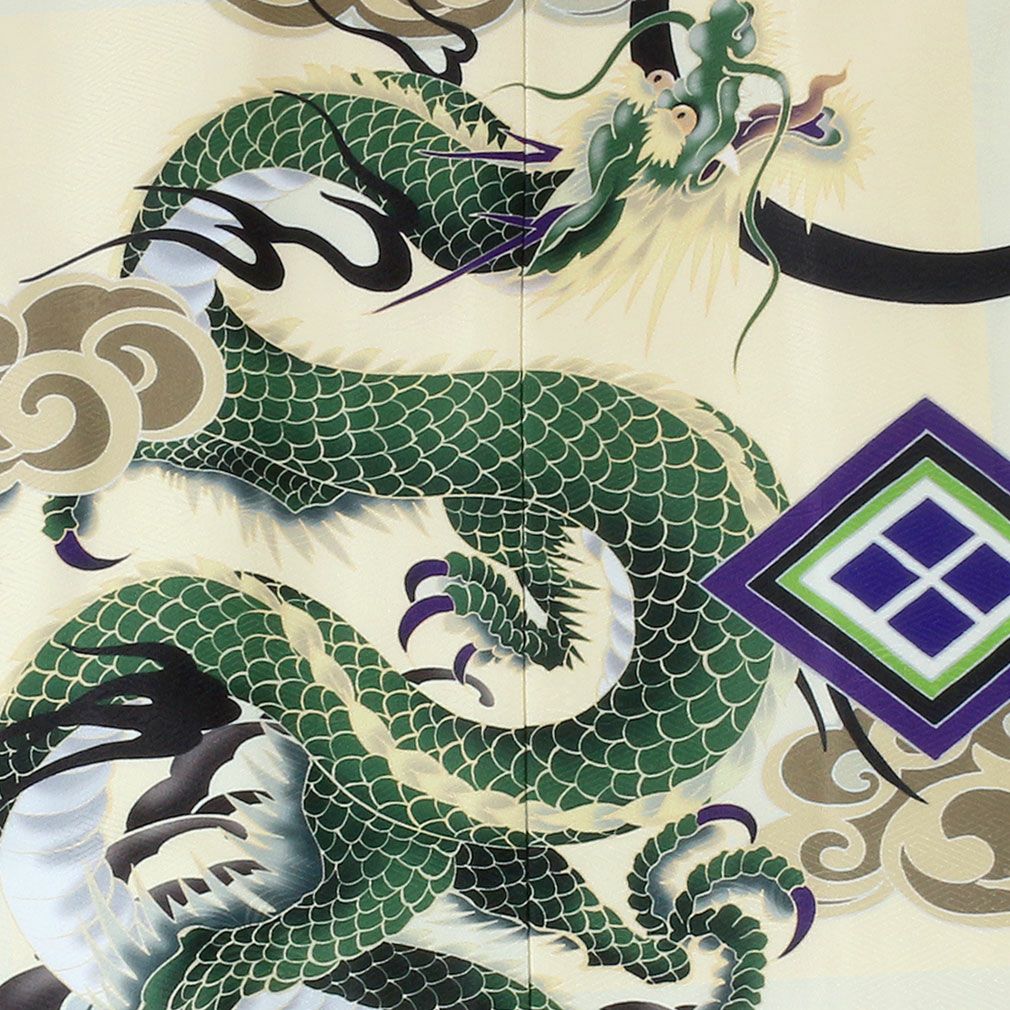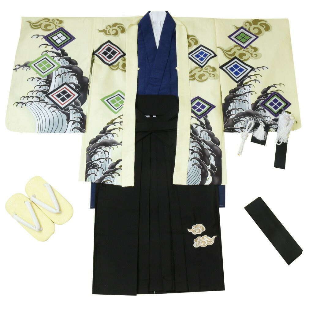 《七五三》 羽織袴10点セット 男の子用 <小町kids> ポリエステル100% <羽織:ベージュ×昇り竜/袴:黒×雲刺繍/着物:紺> 5歳