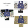 刺 繍:兜、打ち出の小槌などの刺繍(黒、青には金駒刺繍) 地模様:矢絣・羽矢・丸つなぎ