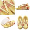 七五三参りやお祝い事にお使い頂ける、女の子用草履をご用意いたしました。 女の子の七五三の晴れ姿をより可愛らしく、着物姿を引き締めるのに欠かせない草履。 ゴールドから朱赤のグラデーションが美しく、散りばめられようにキラキラと光る模様が晴れ着姿をより華やかにします。 煌びやかな草履は、丁子や打ち出の小槌、七宝などが描かれており、お祝いの場に相応しいおめでたい柄付け。 草履には両側に鈴が仕込まれ、歩く度にチリンチリンと可愛らしく鳴ります。 柔らかなクッション加工が施されていますので、お子様の足に優しい作りです。 裏面はすべり止め付きで、お子様でも安心して履くことが出来ます。 七五三はもちろん、お正月や結婚のお祝いなど着物でのお出かけにご利用ください。 大人に一歩近づく、一生に一度の大切なお祝い。 お子様の晴れの日を、かわいらしい草履で、特別な思い出にお役立て下さい。