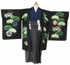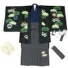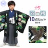 《七五三》 羽織袴10点セット 男の子用 <小町kids> ポリエステル100% <羽織:黒×鷹、松葉/袴:グレー×雲刺繍/着物:紺> 5歳