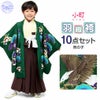 《七五三》 羽織袴10点セット 男の子用 <小町kids> ポリエステル100% <羽織:緑×鷹、松葉/袴:茶×雲刺繍/着物:ベージュ> 5歳