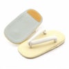 七五三参りやお祝い事にお使い頂ける 男の子用雪駄をご用意いたしました。 男の子の七五三の晴れ姿をよりかっこよく、袴姿を引き締めるのに欠かせない雪駄。 白い花緒が袴姿をより勇壮にします。 水や汚れをはじくビニール素材の為、雨あがりの砂利道や元気なお子様にも安心です。 お手入れもさっと拭き取る程度で簡単で保管もらくらくです。 裏面はすべり止め付きで、お子様でも安心して履くことが出来ます。 雪駄はお子様には歩きにくいかもしれませんので 普段はいている靴のサイズの、少し大きめを選ぶとよいかもしれません。 大人に一歩近づく、一生に一度の大切なお祝い。 ぜひお気に入りの着物と合わせて、晴れの日をお迎えください。