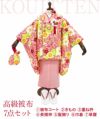 《七五三》 被布7点セット 女の子用 <紅一点> 正絹 日本製 <着物:ピンク・無地/被布:ピンク 黄緑・鹿の子 花模様> 3歳