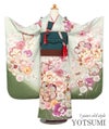 [着物]薄グリーン、モスグリーン、ゴールド、ピンク、パープル、ブラウン、クリーム、エンジ、ホワイト [長襦袢]白色 [重ね衿]朱赤