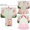 女の子の7歳のお祝いである「帯解きの儀(おびときのぎ)」は、幅の広い帯を結び始める、大人に一歩近づくお祝い。 大切な思い出を彩る「しゃれっこ」ブランドの四つ身着物3点セットをご紹介いたします。 淡いグリーン地に、八重桜や梅などが咲き誇る麗らかで女の子らしいデザイン。 束ねたモチーフの組紐は、花々に寄り添い可愛らしい印象に。 寒い冬を耐えて春にはいち早く花開く梅は、忍耐力や生命力を願う紋様として愛されてきました。 縁起物とされる宝尽くし紋は、福徳を呼ぶ吉祥文様とされお子様の活躍や成長の願う親心が込められています。 ねじ梅の縁取りには金駒刺繍が施され、ふっくらとした質感や、煌びやかな輝きが映える豪華な意匠。 着物一面に散らされた花が豪華絢爛に咲き誇り晴れの日を美しく彩ります。 セットでお届けする長襦袢は、肌映りの良い白色の亀甲柄。 袖や裾から柄の長襦袢がチラッと見えた時にとってもオシャレ。 お好みで半襟を付けて、さらに着姿を可愛らしく見せても。 お着物は、高級ポリエステル素材を使用していて肌触りも滑らか。 お手入れしやすい素材なので、汚れを気にせずに着こなせます。 衿元も重ね襟がついているので華やか。 朱赤色の重ね衿は、光によって綾亀甲紋が浮かび上がり顔周りを美しく引き立てます。 長襦袢、お着物は日本製なので安心してお使いいただけます。 ご姉妹での着用や、肩・腰上げをすることで7歳以外の七五三にもお使いいただけます。 七五三だけでなく、お正月やひな祭り、結婚式や卒園式の袴姿など活躍シーンも豊富な着物です。 他の人とは違うオシャレにこだわりたい、そんなお洒落女子におススメする、ワンランク上の四つ身着物。 可愛らしくも、大人っぽくも見えるこだわりの着物を着て、晴れの日を楽しんでみてはいかがでしょうか。