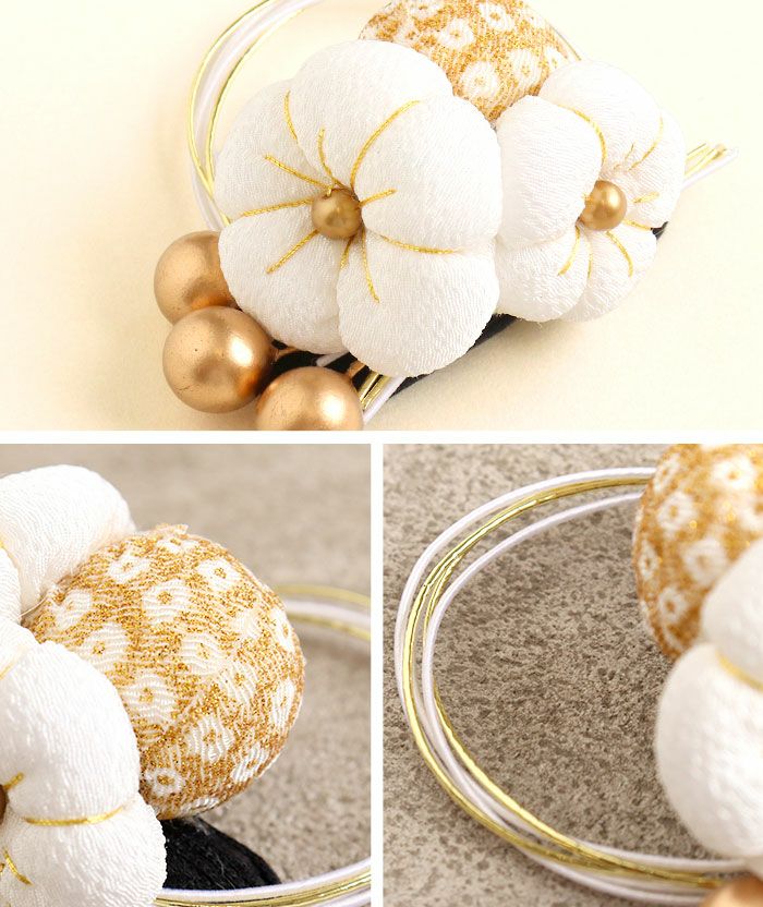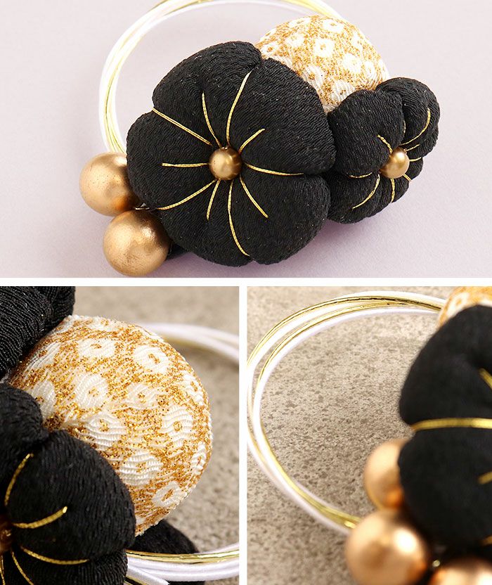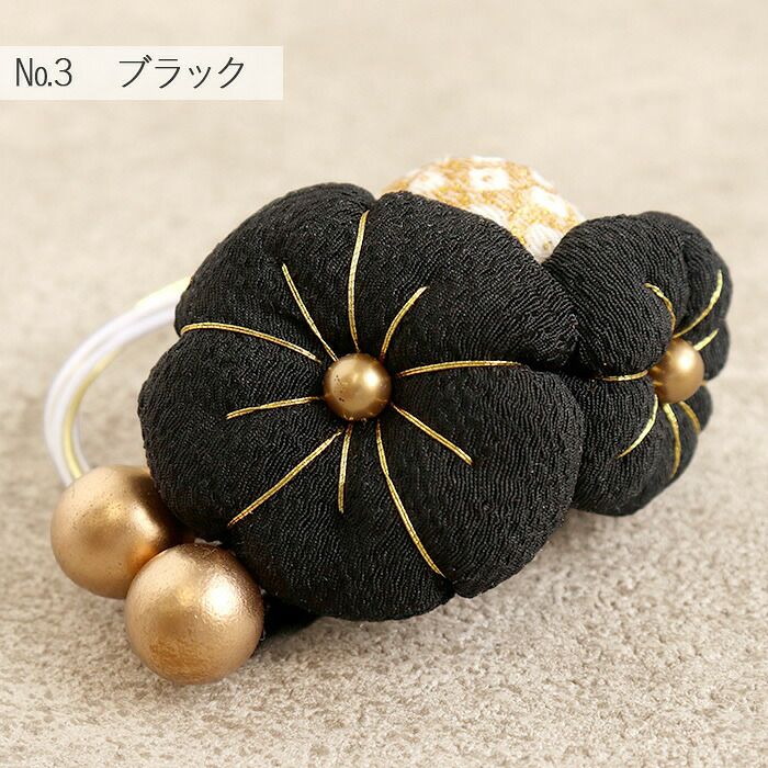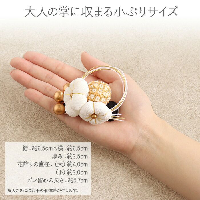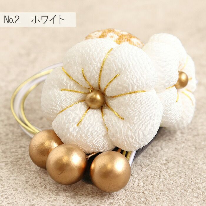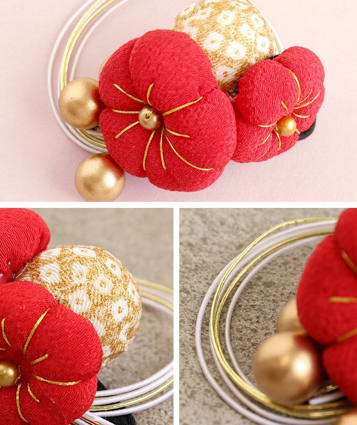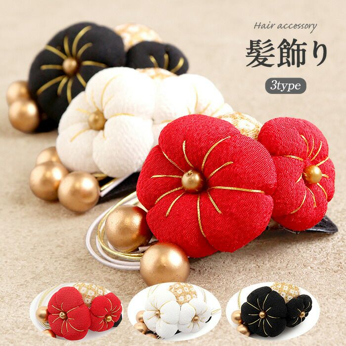 ちりめん細工のふっくら花かざり 七五三 髪飾り 3歳 3才 三歳 7歳 7才 七歳 赤 白 黒 レッド ホワイト ブラック 3色展開 梅 水引 ちりめん 花飾り 日本製