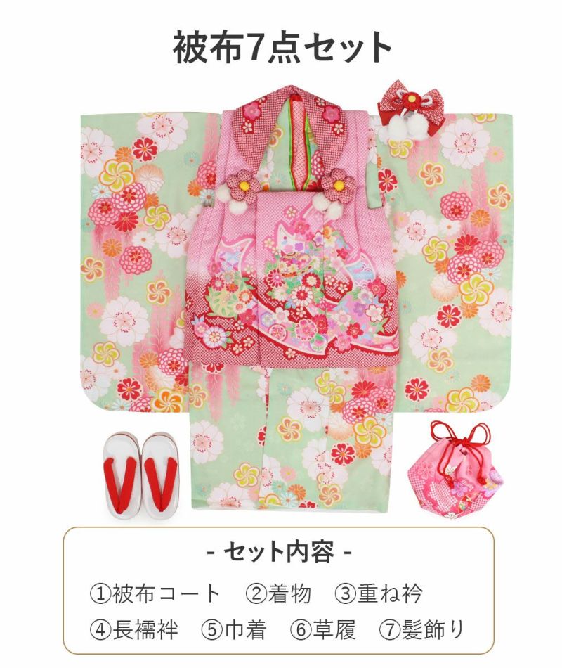 他の画像を見る ≪在庫限り≫ 七五三 着物 3歳 女の子 販売 被布セット 髪飾り 長襦袢 草履 重ね襟 巾着 7点セット 衣装 服装 子供 レトロ 《七五三》 被布7点セット 女の子用 <紅一点> 正絹 日本製 <着物:ピンク・無地/被布:ピンク 黄緑・鹿の子 花模様> 3歳 SALE 定価 ¥ 96,800 のところ 当店特別価格 ¥ 87,120 税込 詳細を見る お気に入りに登録する