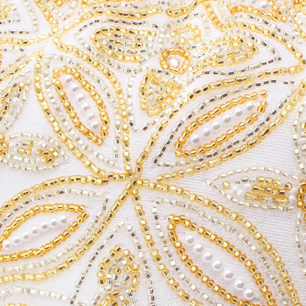 他の画像を見る 《値下げ!23000円→18000円》正絹帯地を使用した礼装スタイルにぴったりの高級利休バッグ 利休バッグ <アイボリー×ゴールド/七宝に華菱> 正絹帯地 日本製 当店特別価格 ¥ 19,800 税込 カートに入れる お気に入りに登録する