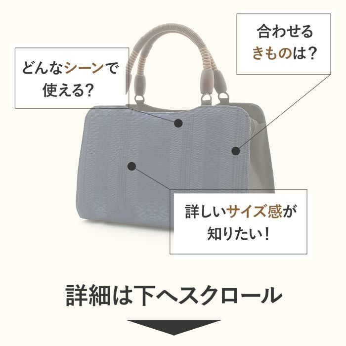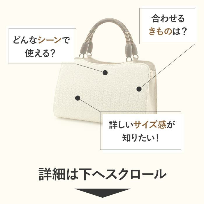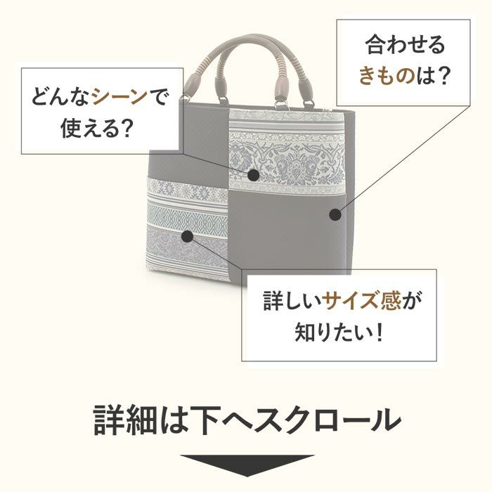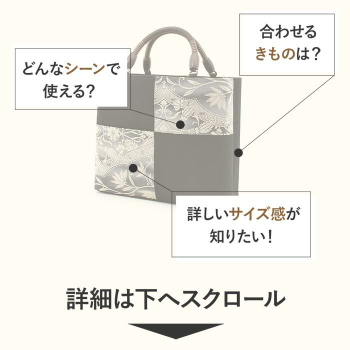 他の画像を見る ≪在庫限り≫ あらゆる礼装に寄り添う西陣織の気品 利休バッグ オフホワイト シルバー ゴールド 白 銀 金 幾何学ライン 西陣織 正絹帯地 日本製 訪問着 礼装用 フォーマル 当店特別価格 ¥ 27,500 税込 カートに入れる お気に入りに登録する
