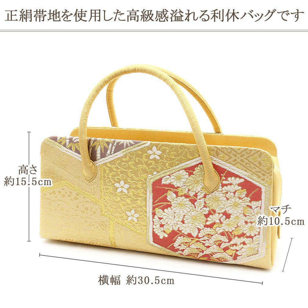 他の画像を見る 《値下げ!23000円→18000円》正絹帯地を使用した礼装スタイルにぴったりの高級利休バッグ 利休バッグ <ゴールド系/破れ亀甲に草花> 正絹帯地 日本製 当店特別価格 ¥ 19,800 税込 カートに入れる お気に入りに登録する