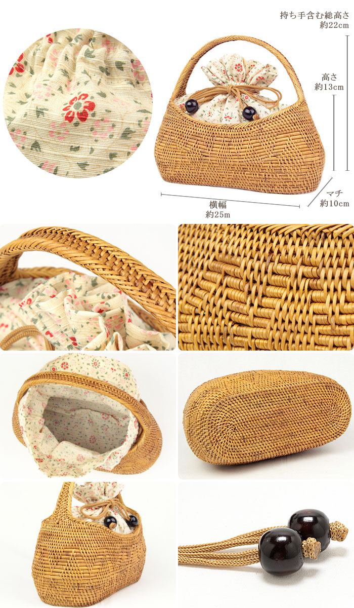 浴衣 浴衣バッグ アタバッグ かご バッグ *クリーム/更紗* <岡重生地>