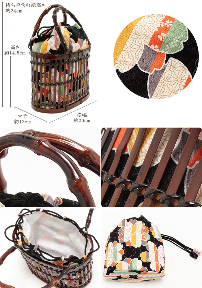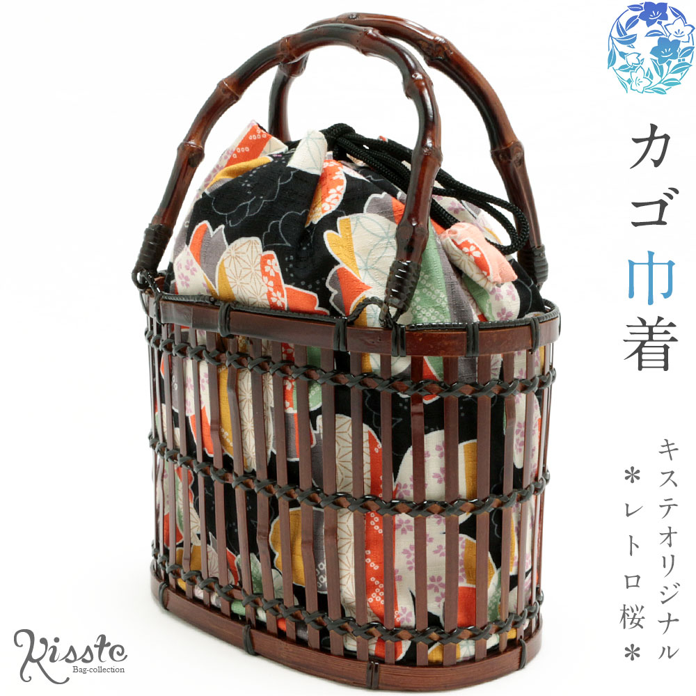 浴衣 かごバッグ かご巾着 かご*黒/桜* <Kissteオリジナル>