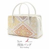 ■■礼装からお茶席まで。晴れの日を彩る高級利休バッグ。■■ 正絹帯地を使用したバッグ生地に施された縁起の良い柄付きが、お着物姿をさらに美しく演出します。 バッグの収納スペースはファスナーの開閉部分と両サイドの3つに分かれており、両サイドにはハンカチや携帯電話などが収納できます。 中央のファスナー部分は大きく開いて取り出しやすく、袱紗や小物がゆったりと収納できる大きさ。 自立する設計で、型崩れしにくいデザインも魅力です。 バッグの底には四隅に鋲がついており スレや傷、汚れなどからバッグを守ってくれます。 訪問着や色無地など御茶席はもちろん、結婚式などのおめでたいお席にもお薦めの商品です。 レンタルの着物であったり譲りものの着物をお召しの機会であっても、一つでもご自身で選んだこだわりのアイテムがあるとお慶びの席のご気分が高まるでしょう。 たった一つの和装バッグでもコーディネート全体の印象をぐっと変えることが出来るのが着物の楽しいところです。 ぜひお慶びの席の留袖・訪問着に、利休バッグを新調してみませんか。