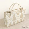 ■ダマスクリーフ模様が華やかさを添える、白梅ブランドのカジュアルバッグ■ ゴールドベージュとシルバーグレーの落ち着いたカラーに、上品なリーフ模様をあしらいました。 マグネット付きの内フラップはワンタッチで簡単開閉。 中身を隠してすっきり持てる、スマート仕様です。 また、バッグの内側には大小のオープンポケットが2つと、ファスナーポケットを備えているので小物の出し入れもしやすいのも嬉しいポイントです。 底鋲付きで擦れや汚れを防ぎ、安心してお使いいただけます。 A4サイズがすっきり収まる大きさで、お買い物やお稽古、お出かけシーンをきれいめに演出。 和装にも洋装にも合わせやすい、きれいめカジュアルなバッグ。 プレゼントとしても喜ばれること間違いなしのアイテムです。