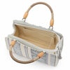 ■ 静かな気品をまとう、洗練のグレートーン ■ 華三彩ブランドの、普段使いにおすすめの博多織和装バッグです。 薄灰を基調に、濃灰・青灰・アイボリー・藤色を織り込んだ上品な縞模様。 華紋や蔓花模様をあしらい、落ち着きの中に優雅さが漂うデザインに仕上げました。 正絹博多織ならではの美しい光沢が、控えめながらも確かな存在感を放ちます。 長財布や携帯電話、化粧ポーチがゆったり収まる使いやすいサイズ感。 中央ファスナー収納に内ポケット・内側サイドポケット付きで、小物もすっきり整理できます。 四隅には底鋲を施し、型崩れや擦れにも配慮した安心の作りです。 ーおすすめポイントー ・正絹博多織の上質な風合い ・グレー×アイボリー×藤色の洗練配色 ・縞に華紋・蔓花を配した優雅なデザイン ・整理しやすい収納設計 ・底鋲付きで丈夫な仕立て ・小紋や紬でのお出かけやお稽古に最適 落ち着きと華やぎを兼ね備え、装いを上品に引き立てる和装バッグです。