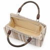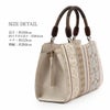 ■ やわらかな彩りで魅せる、上品なぬくもり ■ 華三彩ブランドの、普段使いにおすすめの博多織和装バッグです。 薄茶を基調に、茶・白・ベージュ・やさしいピンクを織り込んだ落ち着きある縞模様。 花唐草や花菱などの柄をあしらい、可憐さと気品を兼ね備えたデザインに仕上げました。 正絹博多織ならではの上品な光沢が、やわらかな色合いにさりげない高級感を添えます。 長財布や携帯電話、化粧ポーチがゆったり収まる使いやすいサイズ感。 中央ファスナー収納に内ポケット・内側サイドポケット付きで、小物もすっきり整理できます。 四隅には底鋲を施し、型崩れや擦れにも配慮した安心の作りです。 ーおすすめポイントー ・正絹博多織の上質な風合い ・茶×白×ベージュ×ピンクのやさしい配色 ・縞に花唐草や花菱を配した上品なデザイン ・整理しやすい収納設計 ・底鋲付きで丈夫な仕立て ・小紋や紬でのお出かけやお稽古に最適 ぬくもりある色合いと品格を兼ね備え、日常の和装をやさしく彩る和装バッグです。