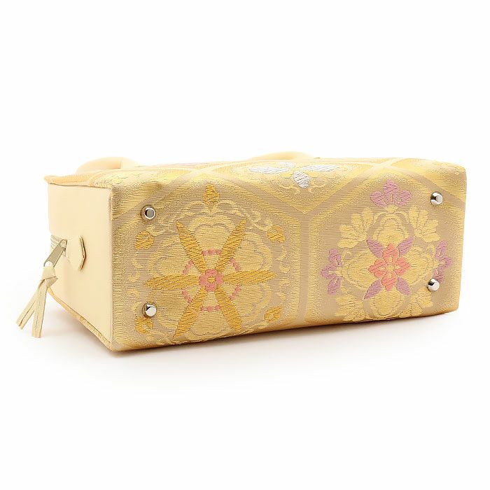 他の画像を見る 《値下げ!23000円→18000円》正絹帯地を使用した礼装スタイルにぴったりの高級利休バッグ 利休バッグ <クリーム&ヒワ/扇面菊唐草> 正絹帯地 日本製高級バッグ 当店特別価格 ¥ 19,800 税込 (0) カートに入れる お気に入りに登録する