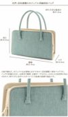 ― 織りの美しさを手元にまとう、上質カジュアル利休バッグ ― 岩佐謹製ならではの丁寧なつくりと、紬×麻の風合いを活かした大人のための利休バッグです。 水色とベージュの配色が落ち着きのある上品さを添え、カジュアルなお着物やお稽古ごと、お気軽なお出かけスタイルにもすっと馴染みます。 ― おすすめポイント― ●岩佐謹製ならではの、丁寧で美しい仕立て ●紬×麻の素材感が際立つ、上品で落ち着いたデザイン ●大きく開くファスナーで荷物の出し入れがスムーズ ●両面のスリットポケットでサッと取り出したい物を収納 ●内ポケット付きで小物をすっきり整理 ●底鋲付きで型崩れ・汚れを防ぎ、長く美しく使える ●カジュアル着物・お稽古・街歩きなど、幅広いシーンに対応 手元に品よく寄り添い、装いをすっきりと引き立ててくれる、大人のための上質利休バッグです。
