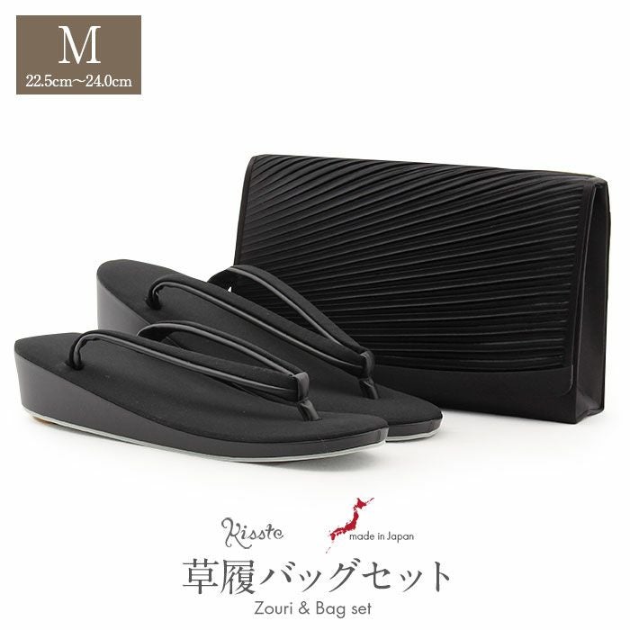 痛くなく歩きやすい、初めての方にも安心の履き心地 草履バッグセット 草履バッグ ブラックフォーマル 喪服 Mサイズ ブラック 黒 2WAY チェーン付き プリーツ 和洋兼用