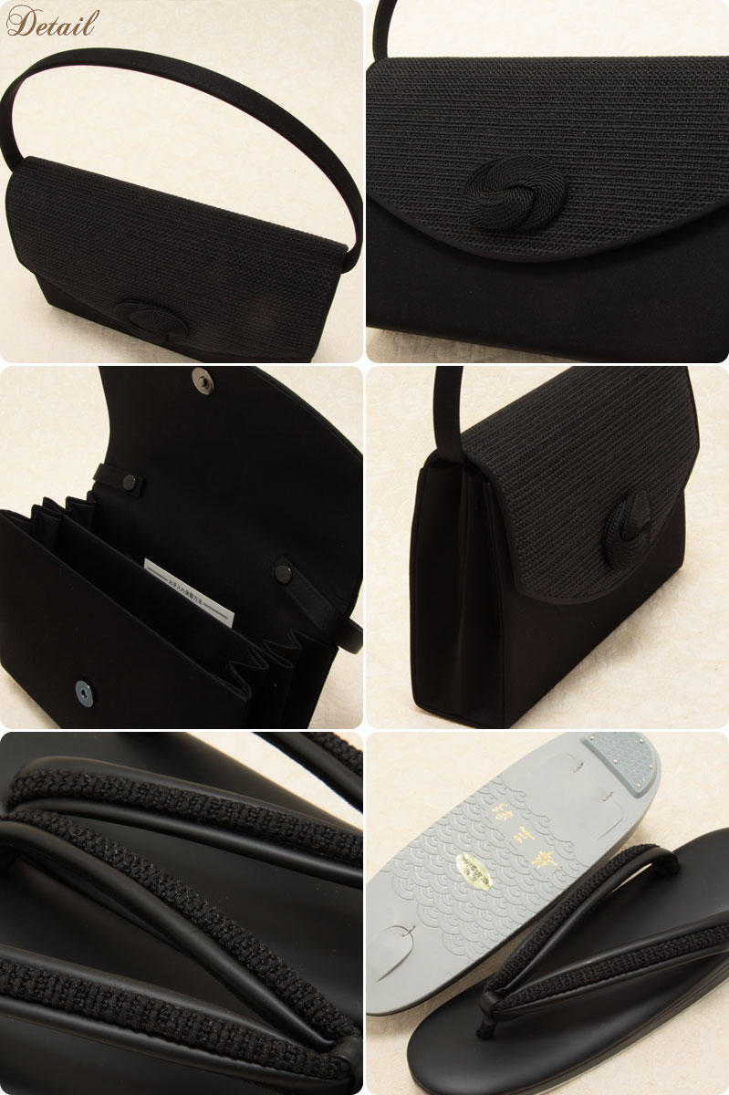草履バッグ セット 喪服用 4点セット<華三彩> Mサイズ 日本製 和洋兼用<ブラック> サイドバッグ ふくさ