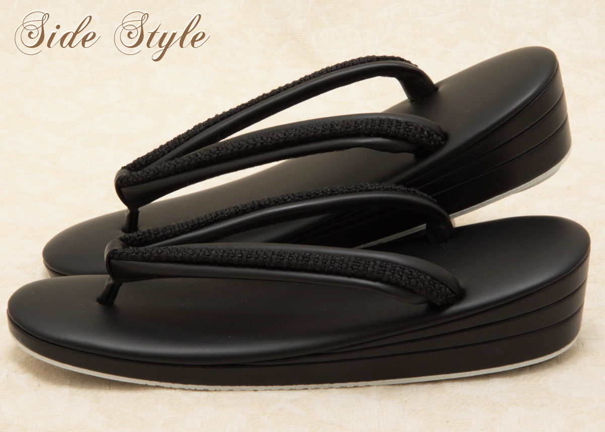 合成皮革を使用した草履は3枚芯の高級優花緒草履で、かかとの高さは約4.5cmと程良いヒール高です。