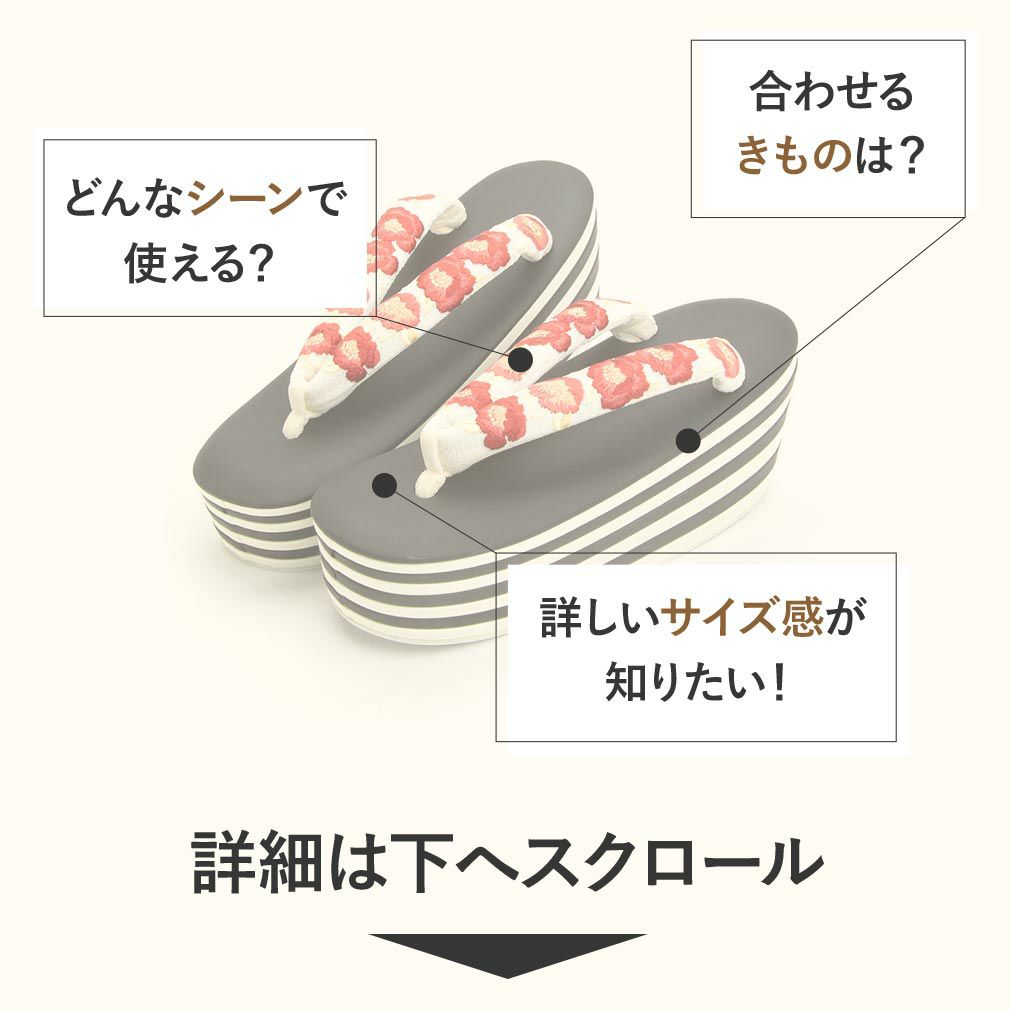 他の画像を見る 痛くなく歩きやすい、初めての方にも安心の履き心地 草履 成人式 振袖用 成人用 レディース フリーサイズ Lサイズ アイボリー ニュアンスベージュ花柄 刺繍 型押し 合皮 3枚芯 当店特別価格 ¥ 19,800 税込 お気に入りに登録する