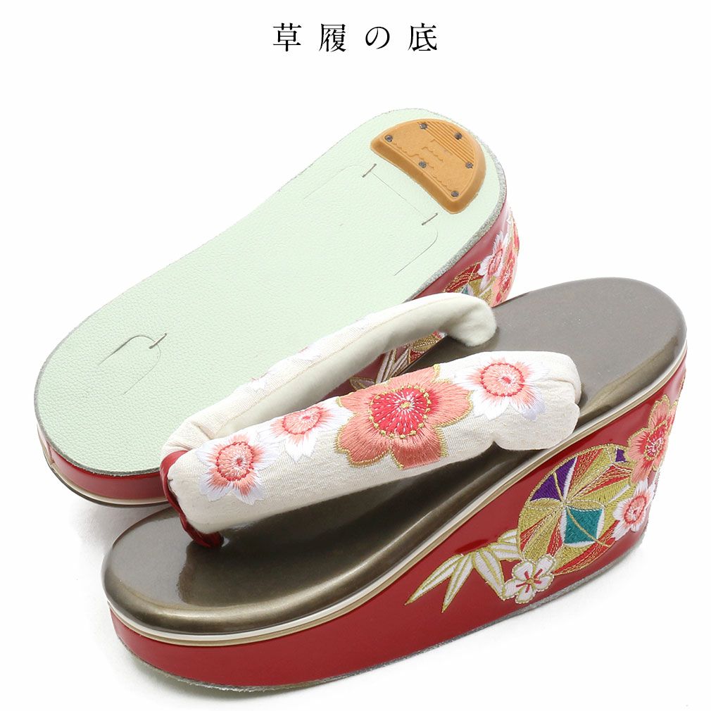 他の画像を見る <華三彩> 刺繍が華やかな振袖用ハイヒール草履 草履 振袖用 <華三彩> フリーサイズ Lサイズ <4枚芯重ね台/桜刺繍>赤白台 当店特別価格 ¥ 30,800 税込 お気に入りに登録する