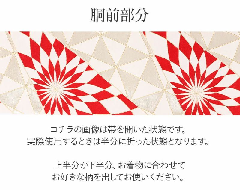 ●実際の商品と同じ色合いに画像修正をしておりますが、環境やモニターの違いにより多少色の違いが出て来ることがあります、ご了承ください。 ●こちらの帯はすでにお仕立てが済んでいる帯です。 ●お仕立ては【袋帯仕立て】となります。