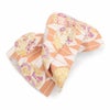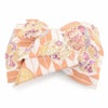 振袖にお使いいただける、西陣織お仕立て上り袋帯です。 鮮やかな色彩の矢絣や丸紋が描かれ帯元を華やかに演出します。 金糸をふんだんに使用しており、ゴールドの輝きが帯周りを上品で煌びやかに彩り、振袖姿に華を添えます。 帯は伝統工芸の西陣織にて仕立てられており、染められた糸を複雑に織って模様を作るので、完成までに多数の工程があり、とても手間暇がかかる高級絹織物です。 こうして丁寧に織られた生地は、先染めしてから織っているので、一般的な染色法の後染めより丈夫でシワになりにくいのが特徴です。 光の当たり方で、絹の柔らかな光沢が反射し、艶やかな帯がお楽しみいただけます。 絹の質感と光沢、大胆で鮮麗な柄が、大切なお祝いの席を華やかに演出します。 結婚式やパーティーでの振袖はもちろん、一度きりの成人式に相応しい豪華な逸品です。