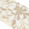 振袖にお使いいただけるお仕立て上り袋帯です。 優しい色合いのクリームの地色に、金糸で描かれた大花が帯元を華やかに演出します。 王道のスタイルからレトロ、個性派まで合わせやすく様々なコーディネートがお楽しみいただけます。 金糸を使用しており、煌びやかでゴージャスな輝きが帯周りを煌びやかに彩り振袖姿に華を添えます。 光の当たり方で、絹の柔らかな光沢が反射し、艶やかな帯がお楽しみいただけます。 絹の質感と光沢、大胆で鮮麗な柄が、大切なお祝いの席を華やかに演出します。 結婚式やパーティーでの振袖はもちろん、一度きりの成人式に相応しい豪華な逸品です。