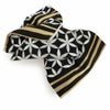 振袖にお使いいただける、西陣織お仕立て上り袋帯です。 こちらの帯は、胴前部分とその他の色柄が異なるデザインで、前後で印象の変化をお楽しみいただけます。 胴前はアイボリー地に牡丹柄で、シンプルで凛とした帯元を印象的に演出します。 リボン結びとなる部分は、黒地にシルバーの七宝柄とゴールドのラインで、煌びやかな輝きが振袖姿に華を添えます。 帯は伝統工芸の西陣織にて仕立てられており、染められた糸を複雑に織って模様を作るので、完成までに多数の工程があり、とても手間暇がかかる高級絹織物です。 こうして丁寧に織られた生地は、先染めしてから織っているので、一般的な染色法の後染めより丈夫でシワになりにくいのが特徴です。 光の当たり方で、絹の柔らかな光沢が反射し、艶やかな帯がお楽しみいただけます。 絹の質感と光沢、大胆で鮮麗な柄が、大切なお祝いの席を華やかに演出します。 結婚式やパーティーでの振袖はもちろん、一度きりの成人式に相応しい豪華な逸品です。
