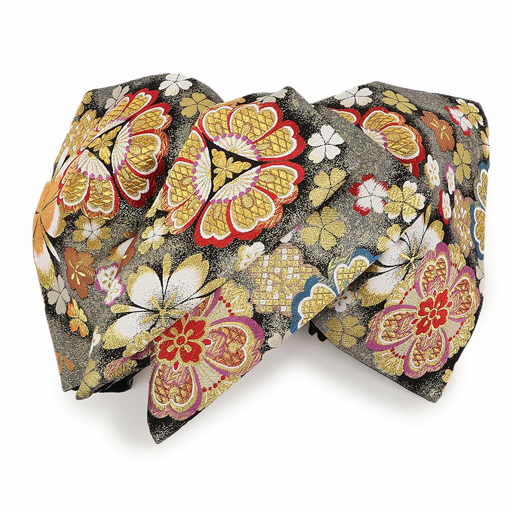 袋帯 振袖用 帯 成人式 ブラック 花尽くし 西陣織 廣部織物 仕立て上がり 振袖帯 結婚式 成人式 振袖 正装 フォーマル おび obi 和装