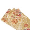 成人式や結婚式、振袖にお使いいただける、西陣織お仕立て上り袋帯です。 ゴールド地に色鮮やかな華紋と熨斗文様が繊細に織り込まれた煌びやかなデザイン。 どんな振袖にも洗練された華やかなアクセントを加えます。 帯は伝統工芸の西陣織にて仕立てられており、染められた糸を複雑に織って模様を作るので、完成までに多数の工程があり、とても手間暇がかかる高級絹織物です。 こうして丁寧に織られた生地は、先染めしてから織っているので、一般的な染色法の後染めより丈夫でシワになりにくいのが特徴です。 綿密に織られた西陣織は糸数も多く、ぐっと締まって緩みにくいので、着姿もしゃんと背筋が伸びます。 絹の帯には、金糸を使用しており、魅入ってしまうほどの美しい輝きが魅力的。 光の当たり方で、絹特有の柔らかな光沢や金銀糸が反射し、高級感あふれる美しい帯がお楽しみいただけます。 絹の質感と光沢、大胆で鮮麗な柄が、大切なお祝いの席を華やかに演出してくれるでしょう。 結婚式やパーティーでの振袖はもちろん、一度きりの成人式に相応しい豪華な逸品です。