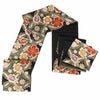 成人式や結婚式、振袖にお使いいただける、西陣織お仕立て上り袋帯です。 落ち着いた黒に七宝・華紋・鹿の子のモチーフが色彩豊かに織り込まれており、その繊細で華やかなデザインが目を引きます。 特に金糸を使った緻密な織りは、帯全体に豪華で上品な輝きを与えています。 王道のスタイルからレトロ、モダンスタイルまで合わせやすく、様々なコーディネートがお楽しみいただけます。 帯は伝統工芸の西陣織にて仕立てられており、染められた糸を複雑に織って模様を作るので、完成までに多数の工程があり、とても手間暇がかかる高級絹織物です。 こうして丁寧に織られた生地は、先染めしてから織っているので、一般的な染色法の後染めより丈夫でシワになりにくいのが特徴です。 綿密に織られた西陣織は糸数も多く、ぐっと締まって緩みにくいので、着姿もしゃんと背筋が伸びます。 絹の帯には、金糸などをふんだんに使用しており、魅入ってしまうほどの美しい輝きが魅力的。 光の当たり方で、絹特有の柔らかな光沢や金糸が反射し、高級感あふれる美しい帯がお楽しみいただけます。 絹の質感と光沢、大胆で鮮麗な柄が、大切なお祝いの席を華やかに演出してくれるでしょう。 結婚式やパーティーでの振袖はもちろん、一度きりの成人式に相応しい豪華な逸品です。