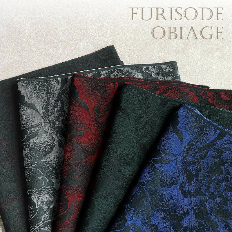 ダークカラーのモダンな振袖用正絹帯揚げをご用意しました。 シルクならではの光沢感や、深みのある色調が上品で落ち着いた印象を与えます。 5種類の色展開からお選びいただけるので、振袖にこだわらず、お好みのお着物や色柄に合わせてコーディネートが楽しめます。 深みのある5色の色味は艶やかでクールな雰囲気を演出してくれます。 華やかさを感じられる牡丹の柄行も、大人カッコいい女性にふさわしい一品です。 帯揚げは着物の印象を大きく左右する重要なアイテムです。 お気に入りのカラーをお選びいただき、粋でおしゃれな振袖スタイルをお楽しみください。