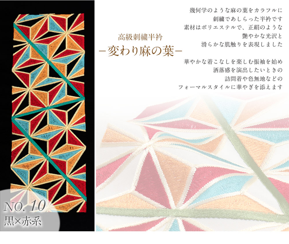 【振袖用】 高級刺繍半襟 <変わり麻の葉> 全10色