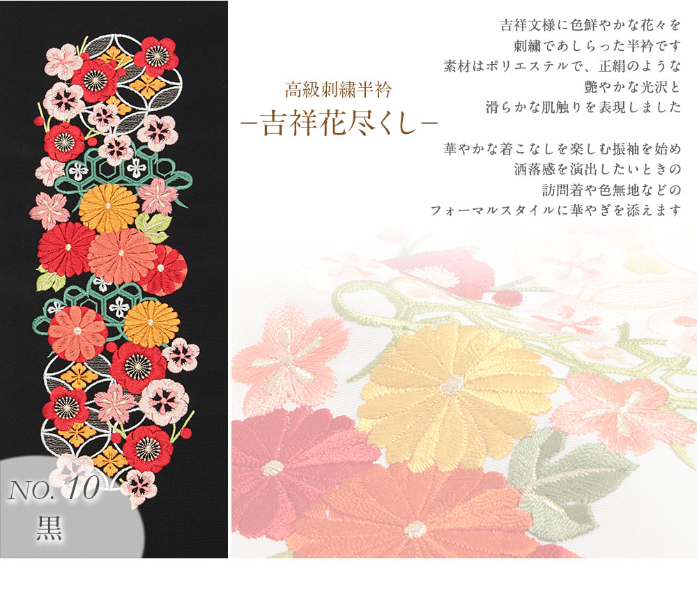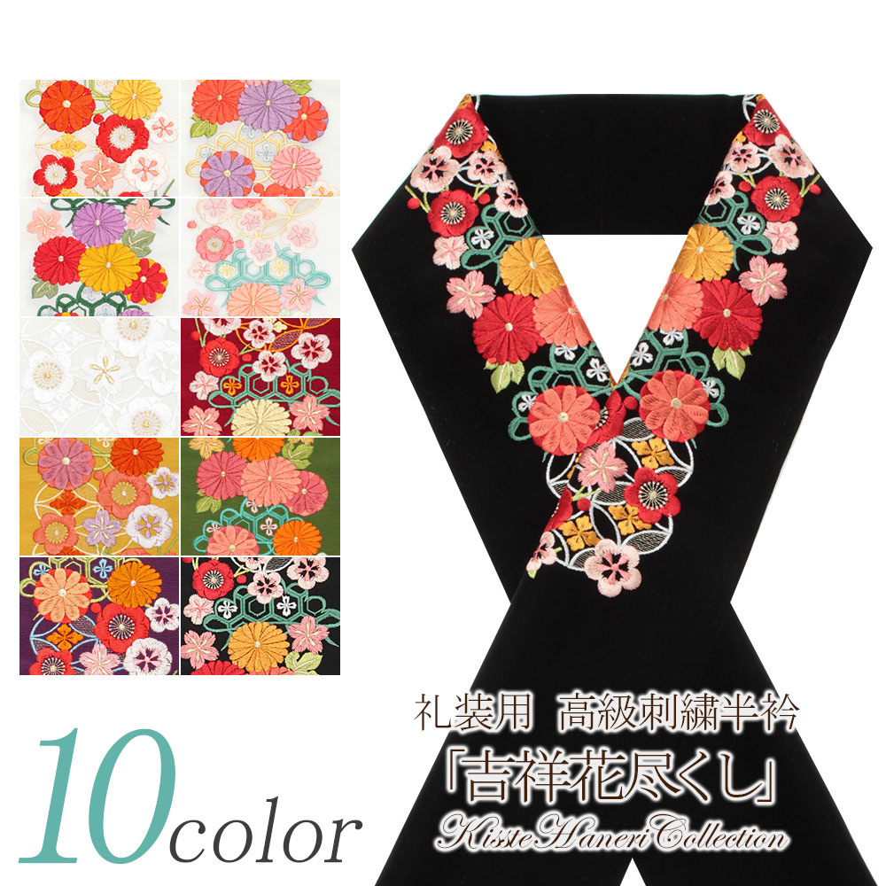 【振袖用】 高級刺繍半襟 <吉祥花尽くし> 全10色