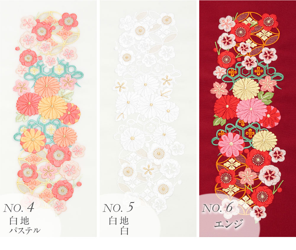 吉祥文様に色鮮やかな花々を刺繍であしらった半襟です。