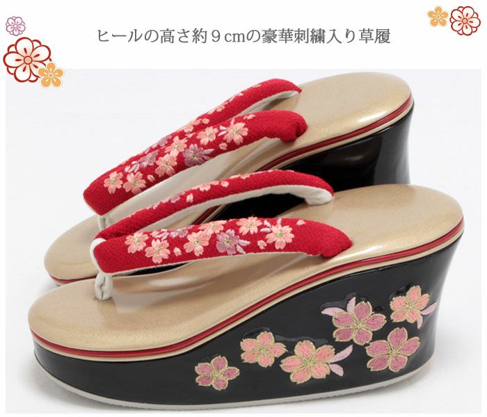 他の画像を見る ≪在庫限り≫ 南天刺繍が華やかな振袖用草履 草履 成人式 振袖用 <厚底 ハイヒール> Lサイズ フリーサイズ 日本製<赤/南天 刺繍> 当店特別価格 ¥ 30,800 税込 在庫切れ (0) 詳細を見る お気に入りに登録する