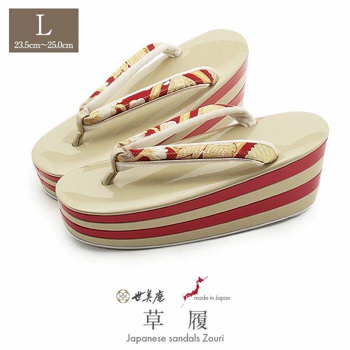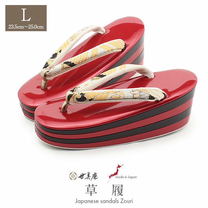 他の画像を見る 痛くなく歩きやすい、初めての方にも安心の履き心地 草履 成人式 振袖用 成人用 レディース 世美庵 Lサイズ ゴールド レッド 華紋 帯地 合皮 4枚芯 厚底 ハイヒール バイカラー 日本製 当店特別価格 ¥ 19,800 税込 (0) カートに入れる お気に入りに登録する