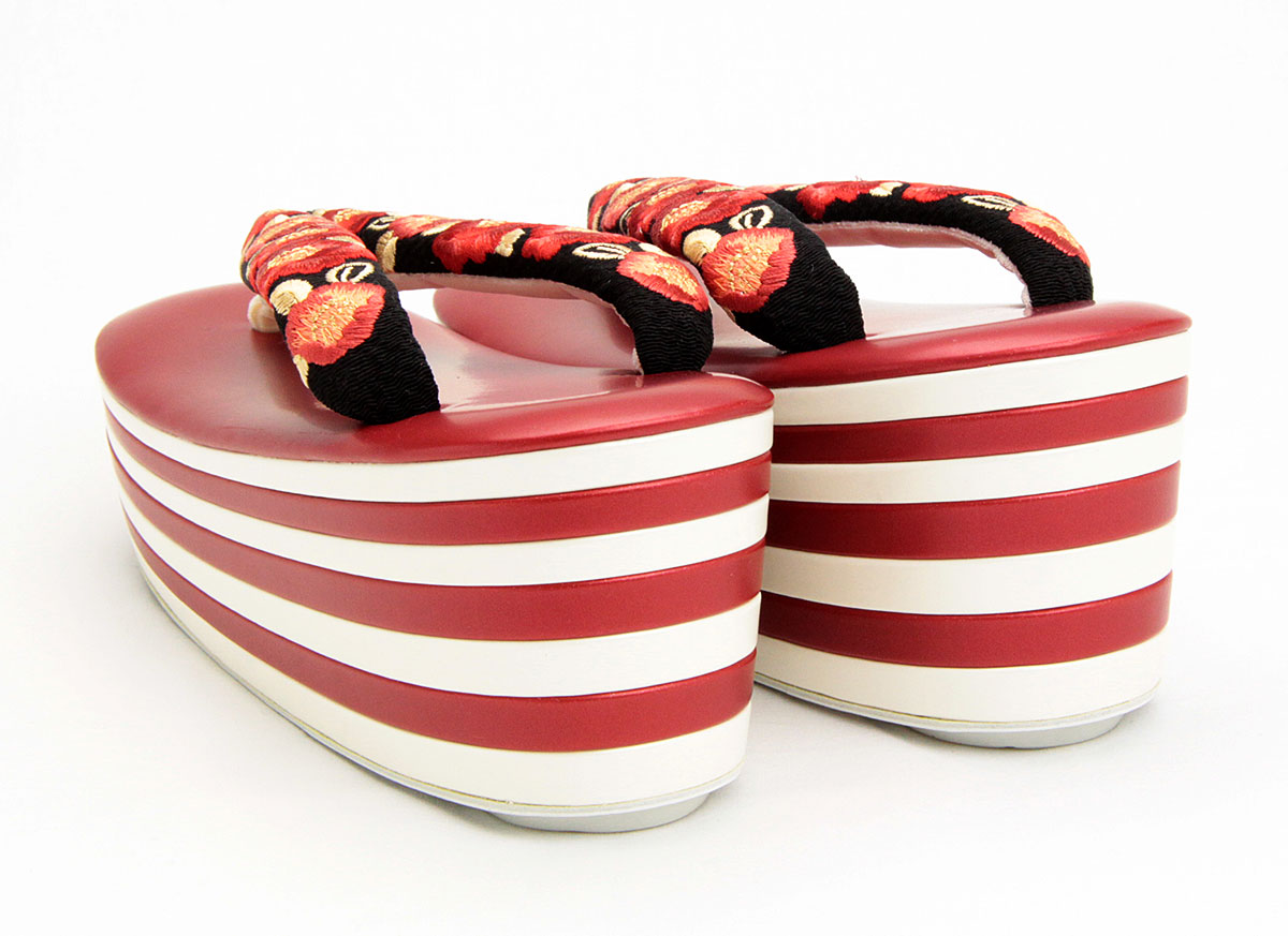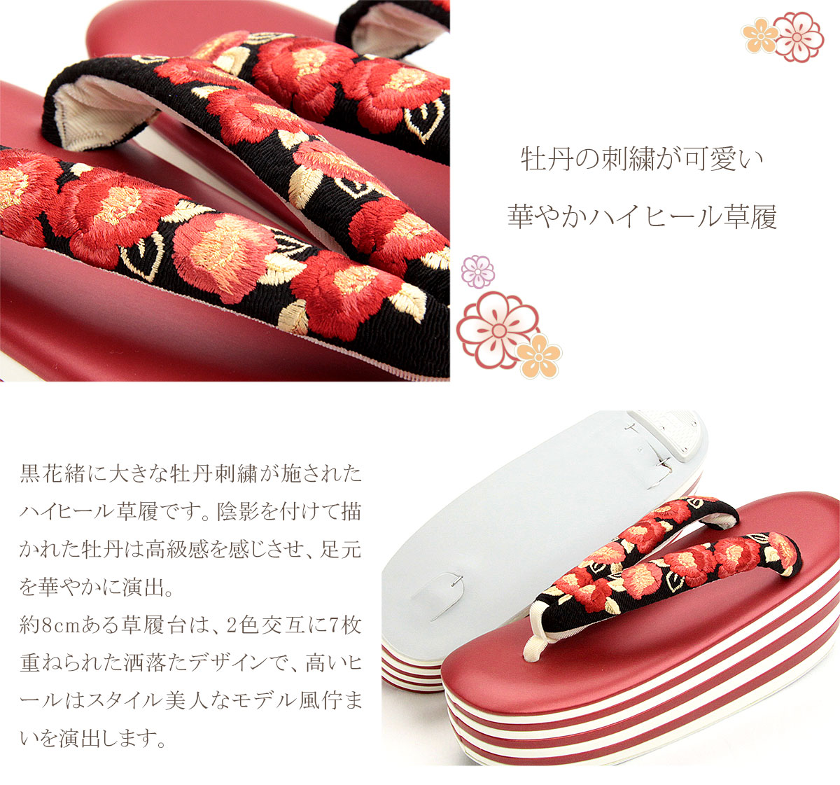 花緒の牡丹と7枚の重ね芯が粋な、ハイヒール草履。