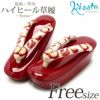 草履 成人式 振袖用 <fussa> Lサイズ フリーサイズ 日本製 厚底 ハイヒール こっぽり ぽっくり <赤/鶴 梅 刺繍>