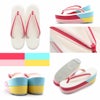 東京・浅草製の有名ブランド「紗織」の振袖&袴用草履です。 艶やかで光沢のある草履台に、ライン入りの花緒を組み合わせた高級厚底草履。 斬新でおしゃれなデザインで人気のハイヒールが振袖や袴姿をさらに豪華に演出します。 4色切り替えし2枚芯のかかとの高さは約8cm。 柔らかなクッション加工が施され、つま先からかかとまで厚底のため疲れにくい構造で履きやすさ抜群の逸品です。 成人式や結婚式、謝恩会などの振袖をはじめ、卒業式の袴用としても人気のある「紗織謹製」の高級ハイヒール草履です。 ※5色、Mサイズ・Lサイズをご用意しております。