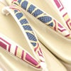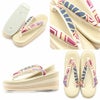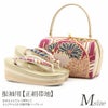 正絹帯地を使用した振袖用草履バッグセットです。 バッグ生地と花緒には、金糸をふんだんに使用して毘沙門亀甲に菊などが織り込まれており、振袖スタイルに相応しい豪華で華やかさのあるデザインです。 バッグと同じデザインの草履の花緒が統一感をプラスし、お着物姿をより一層華やかに演出します。 柔らかなクッション加工が施された履きやすさ抜群の逸品。 足裏にあたる部分はなだらかな曲線で歩きやすく、初心者の方にも安心の履き心地です。 かかとの高さは約8cmのヒール高で、小柄なお嬢様はもちろん、身長の高いお嬢様の着姿をも美しく魅せ、歩きやすく足への負担を軽減します。 バッグの容量は、お財布やスマホなどが入る程良い大きさ。 成人式や結婚式の振袖をはじめ、謝恩会や卒業式など晴着スタイルにご利用いただける振袖用草履バッグセットです。