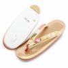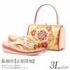 正絹帯地を使用した振袖用草履バッグセットです。 バッグ生地と花緒には、金糸をふんだんに使用して華紋などが織り込まれており、振袖スタイルに相応しい豪華で華やかさのあるデザインです。 バッグと同じデザインの草履の花緒が統一感をプラスし、お着物姿をより一層華やかに演出します。 柔らかなクッション加工が施された履きやすさ抜群の逸品。 足裏にあたる部分はなだらかな曲線で歩きやすく、初心者の方にも安心の履き心地です。 かかとの高さが約5.5cmと程良いヒール高の2枚芯。草履の天部分(表面)はソフトな足触りで柔らかなクッション加工になっており、衝撃にも強く長時間の歩行も疲れを感じさせない逸品です。 バッグは一本手で持ちやすく、袱紗やお財布、スマートフォンなどがしっかりと入る大きさ。 成人式や結婚式の振袖をはじめ、謝恩会や卒業式など晴着スタイルにご利用いただける振袖用草履バッグセットです。